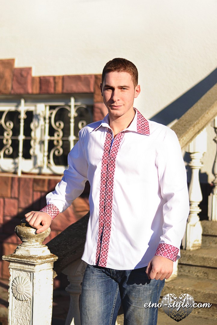An elegant and stylish embroidered shirt for young and active men. It is perfect for both official style and festive occasions. Red and black threads can be changed to any other colors according to your individual preferences. Men’s embroidered shirts at our store suit every taste and budget.
