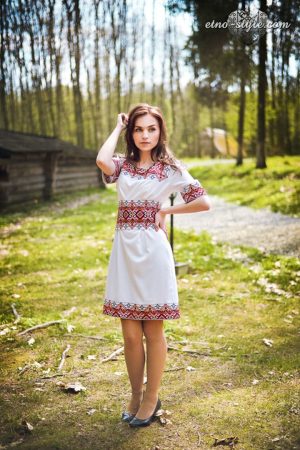 An embroidered dress with somewhat fabulous and fantastic elements is designed for real beauties. It is distinguished by a perfect combination of the extraordinary and modern wide corset style and warm colors of the embroidery. The natural fabric of the dress will ensure you comfort and confidence all the day long.
