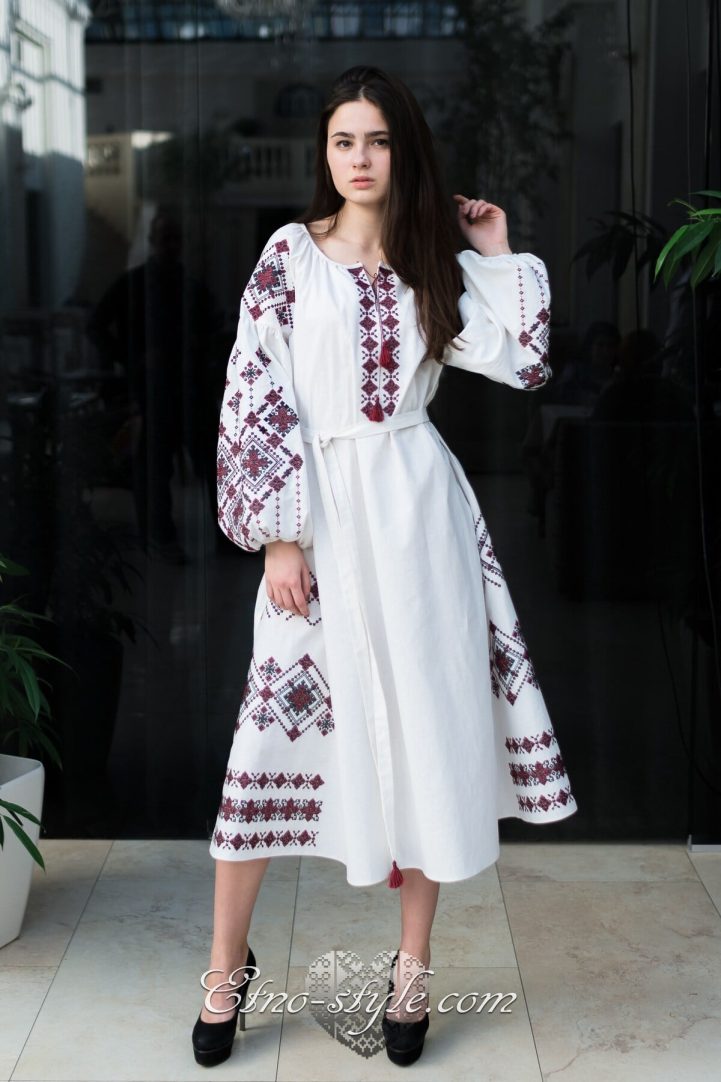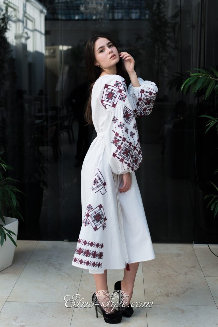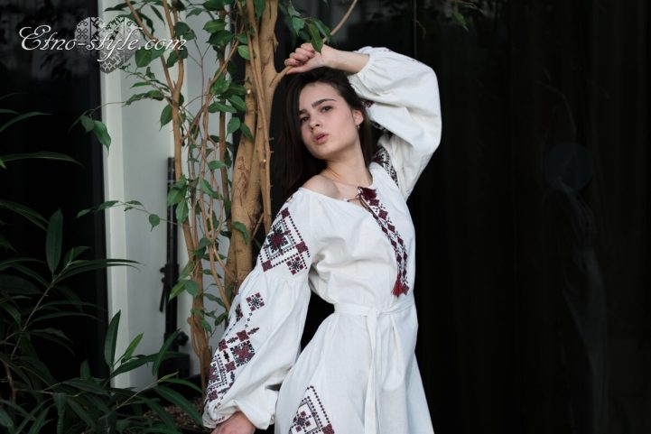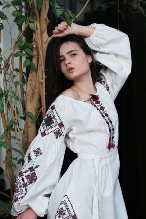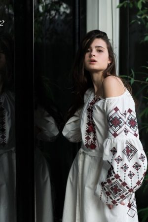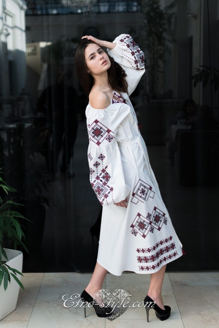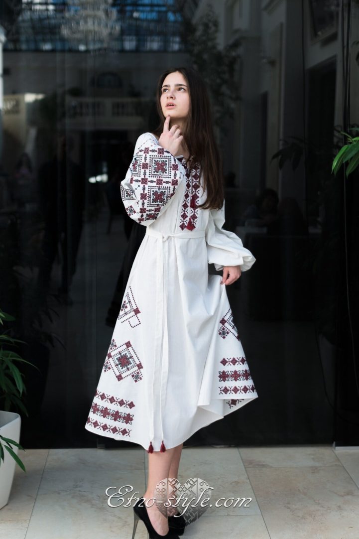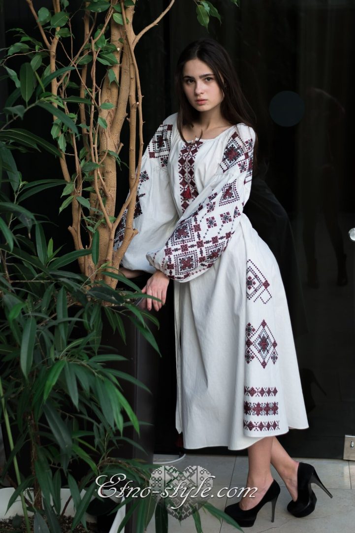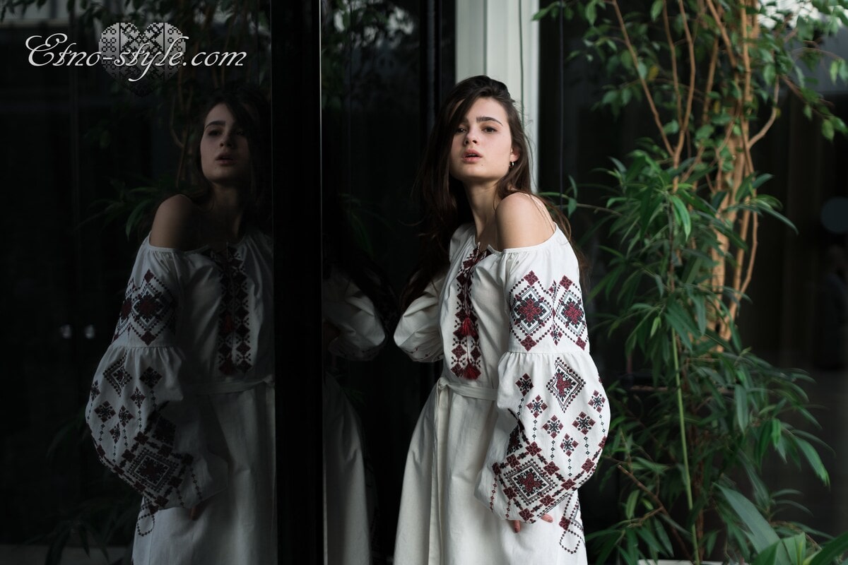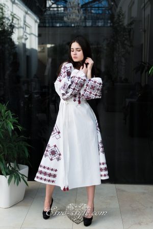Magnificent embroidered dress decorated with rich ornaments in the traditional red and black colors. Stylish elegant design of the dress will elegantly emphasize your figure. The color and type of fabric and as well as the color palette of embroidery can be replaced according to your wishes. To do this, just call us, we will be glad to listen to your wishes and create your own unique product.
