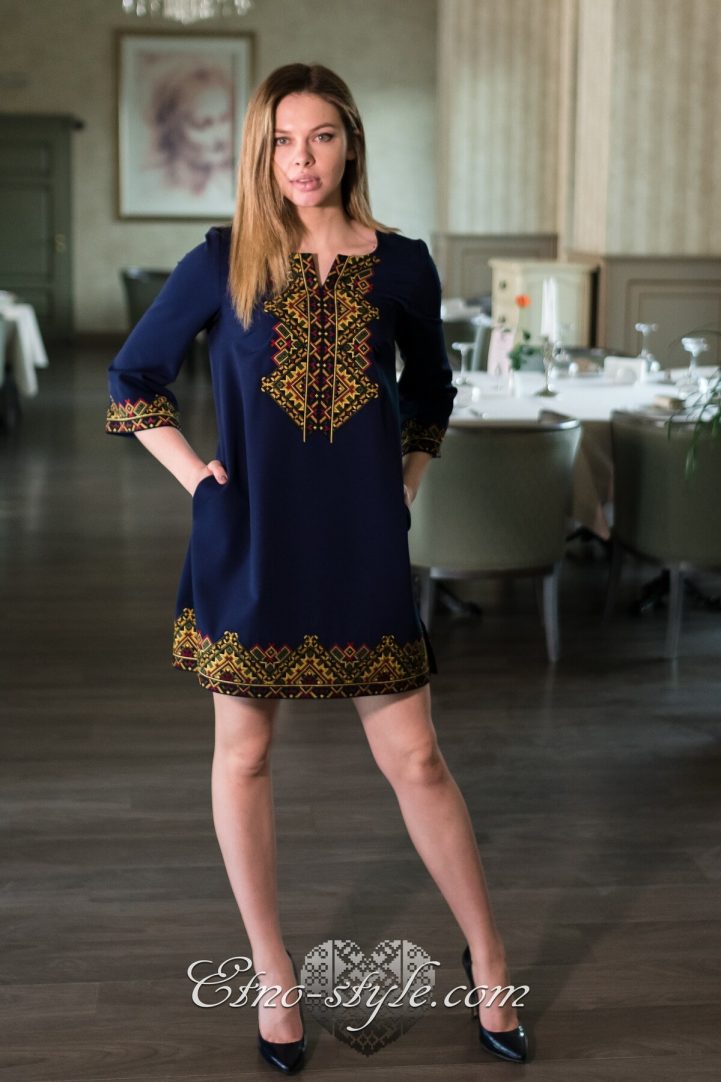 Стильное вышитое платье модного свободного кроя станет прекрасным дополнением коллекции вашей одежды. В данной модели использована ткань «Николь» элегантного темно-синего цвета, что по вашим пожеланиям может быть заменена на любую другую. Аналогично вы можете самостоятельно выбрать цветовую палитру вышивки и фасон платья. Ждем вашего звонка и с радостью учтем все ваши пожелания.