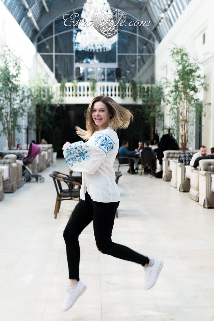 Невероятно нежная и хрупкая женская вышиванка стильного ультрамодного фасона станет неотъемлемым элементом гардероба каждой девушки. На фото использован натуральный лен, украшенный нежно-голубыми вышитыми орнаментам техникой «крестик». По вашим пожеланиям тип, цвет ткани, как и сама вышивка может быть изменена. Для этого Вам необходимо позвонить нам и высказать свои требования.