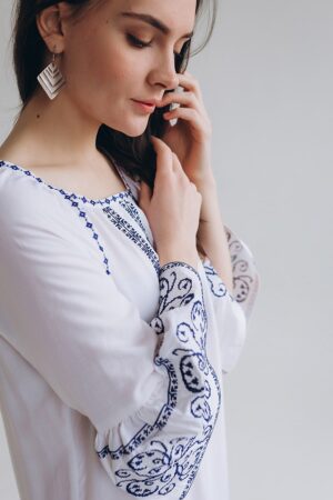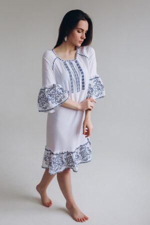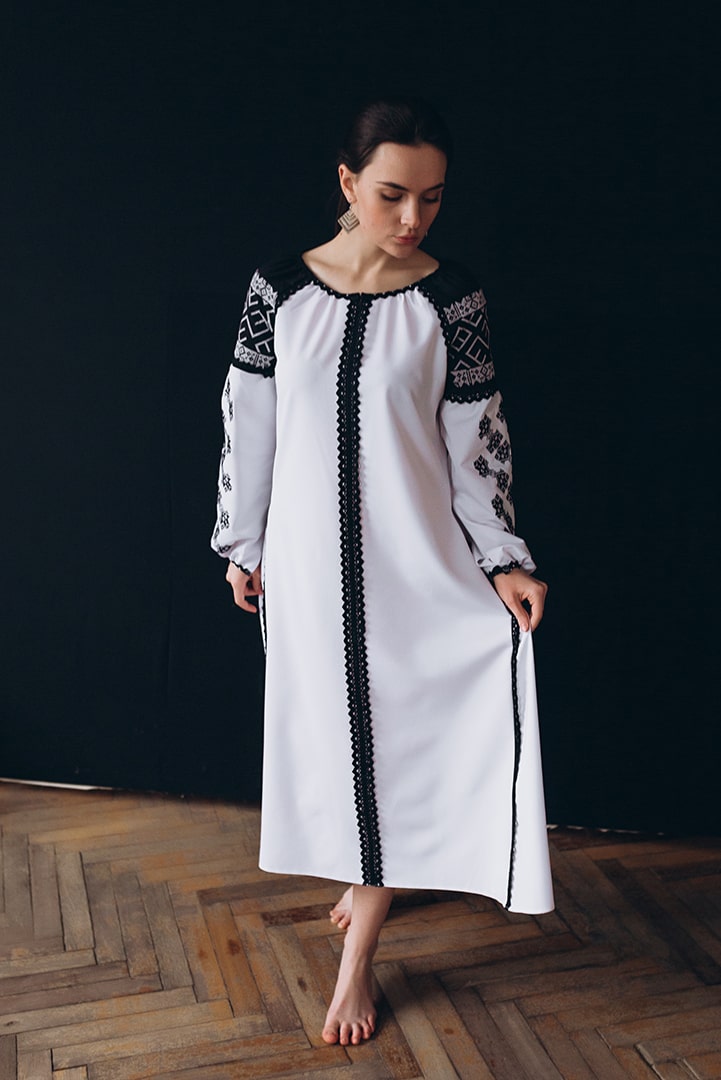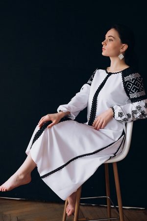 Чудове поєднання класичного чорного та білого кольорів. Водночас проста але вишукана сукня для тих хто цінує елегантність у деталях. Чорно-біле поєднання кольру – увіверсальне. Завжди актуальне, модне ти доречне. Такий вишитий ансамбль виглядає по-особливому святково. Придбайте свою особливу сукню для будь-якої урочистості, або ж, щоб мати свій особливий вишитий скарб..