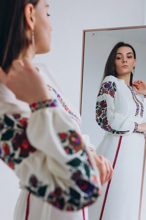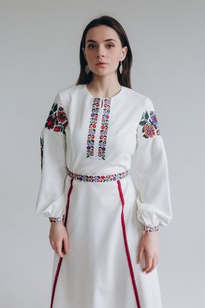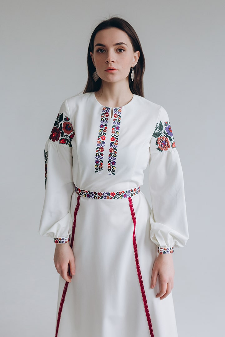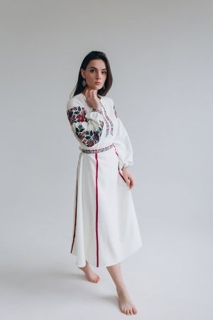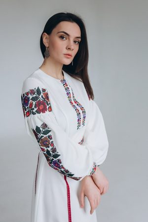 Яскрава святкова вишита сукня Чар-зілля, прикрашена різнобарвнии квітковим орнаментом на рукавах та на пілочці. На манжетах та поясі представлений дещо спрощений варіант взору, який доповнює композицію сукні.