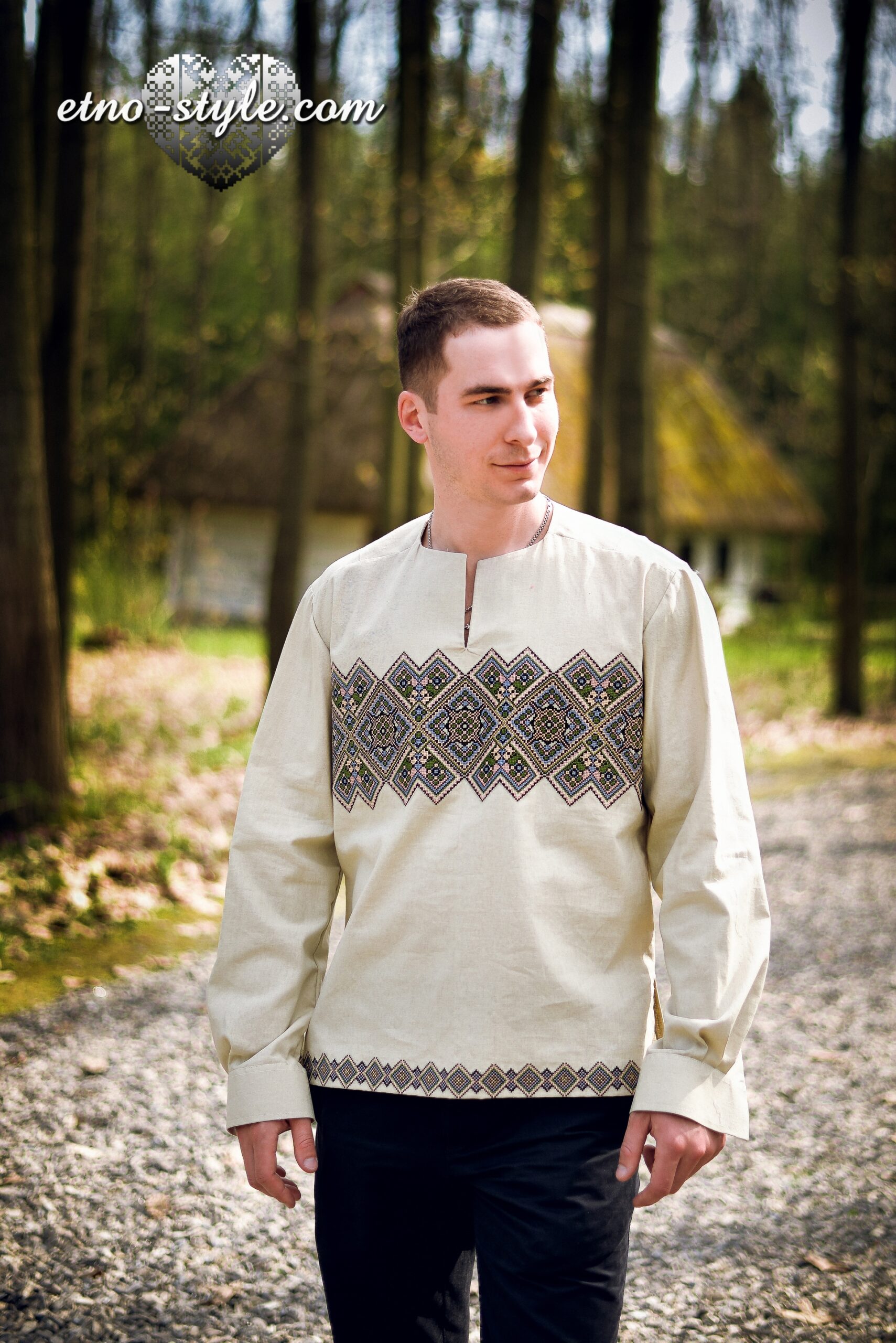 Стильна чоловіча вишита сорочка з оригінальним горизонтальним розташуванням орнаменту є вдалим поєднанням автентичності та сучасної неординарності. Колірна гама вишивки та тканина може бути змінена згідно з вашими побажаннями.