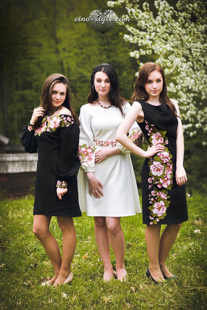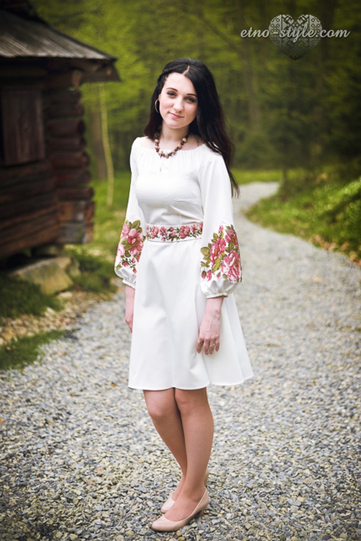 Жіночна та вишукана вишита сукня з широкими рукавами, оздоблена вишивкою ніжними весняними квітами. Колірна гама вишивки та тканина може бути змінена згідно з вашими побажаннями.