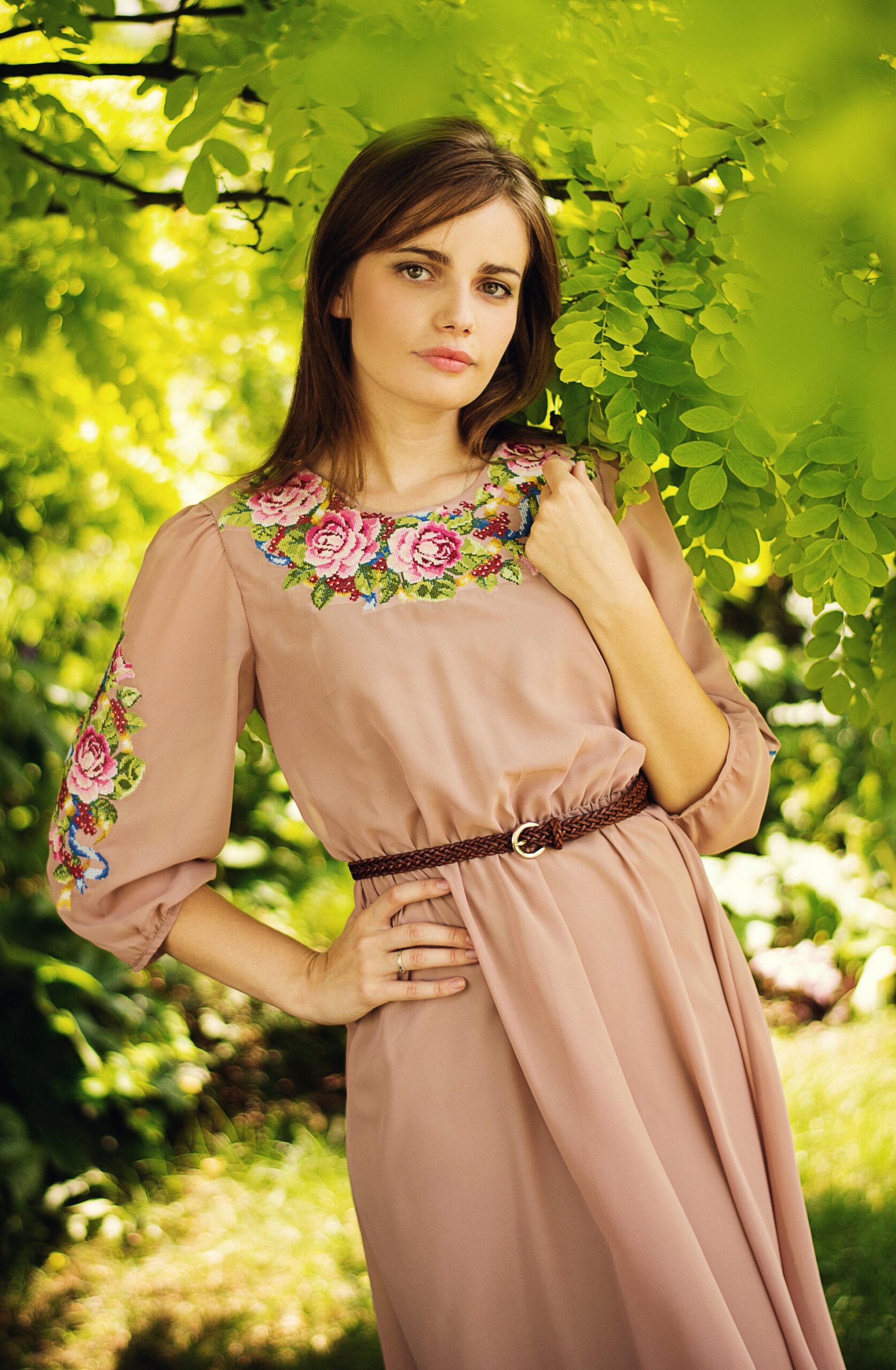 Легка вишита шифонова сукня оздоблена розкішними вишитими трояндами, що витончено підкреслюють горловину та рукави. Кольрова гама та фасон сукні можуть бути змінені згідно з вашими побажаннями.