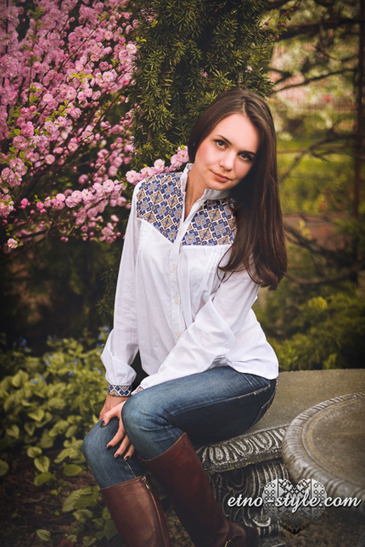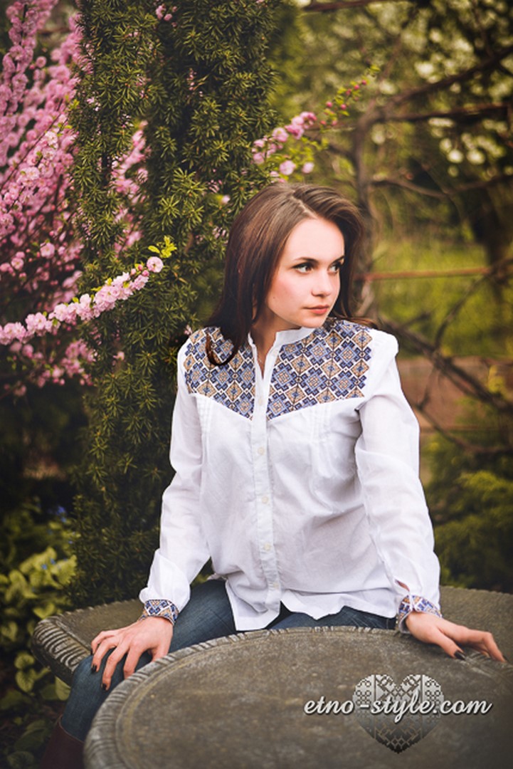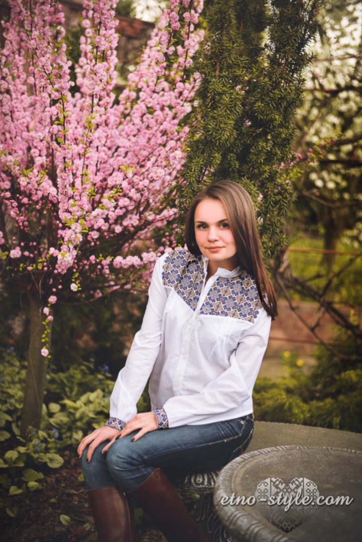 Елегантна офіційна жіноча вишиванка з багатою вишивкою у вдало підібраній колірній гамі. У вишитій сорочці гармонійно комбінується стильний фасон та автентика в оздобленні вишивкою. Колірна гама вишивки та тканина може бути змінена згідно з вашими побажаннями.
