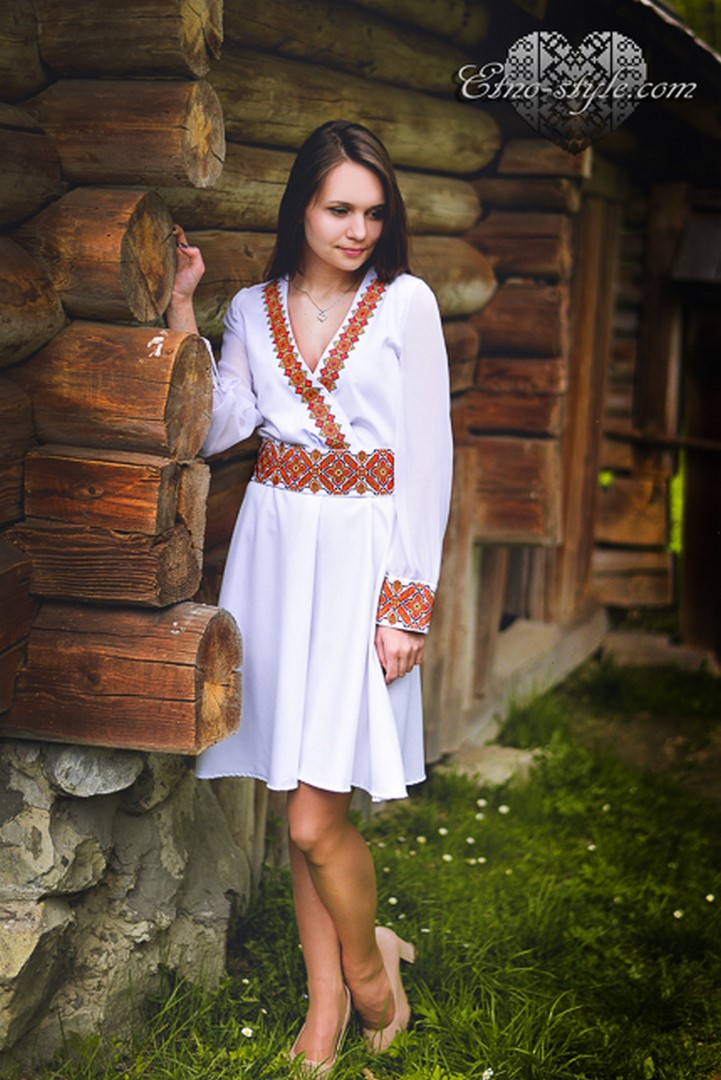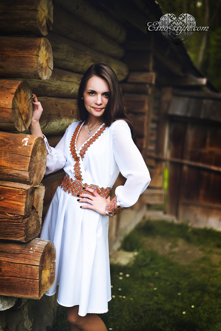 Вишите плаття стильного жіночного крою з гармонійним оздобленням вишивкою в гуцульській колірній гамі. Колірна гама вишивки та тканина може бути змінена згідно з вашими побажаннями.